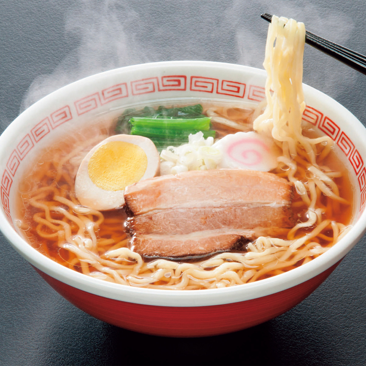 日本三大ラーメンの喜多方ラーメン。醤油味のラーメンにチャーシューをのせてお召し上がりください。