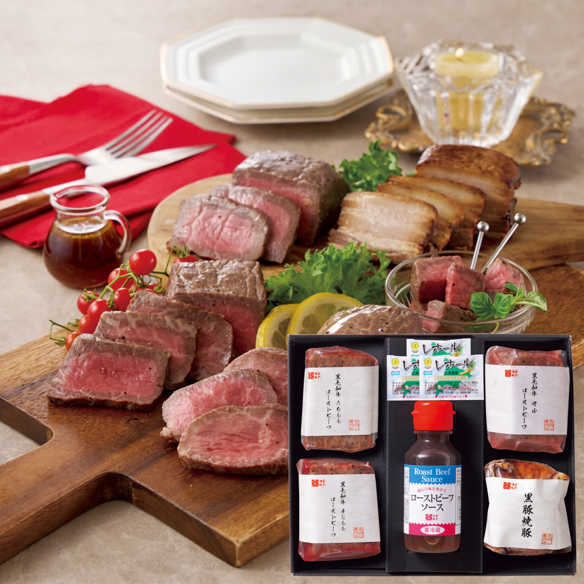 黒毛和牛ローストビーフ3種と黒豚焼豚セット B8-14