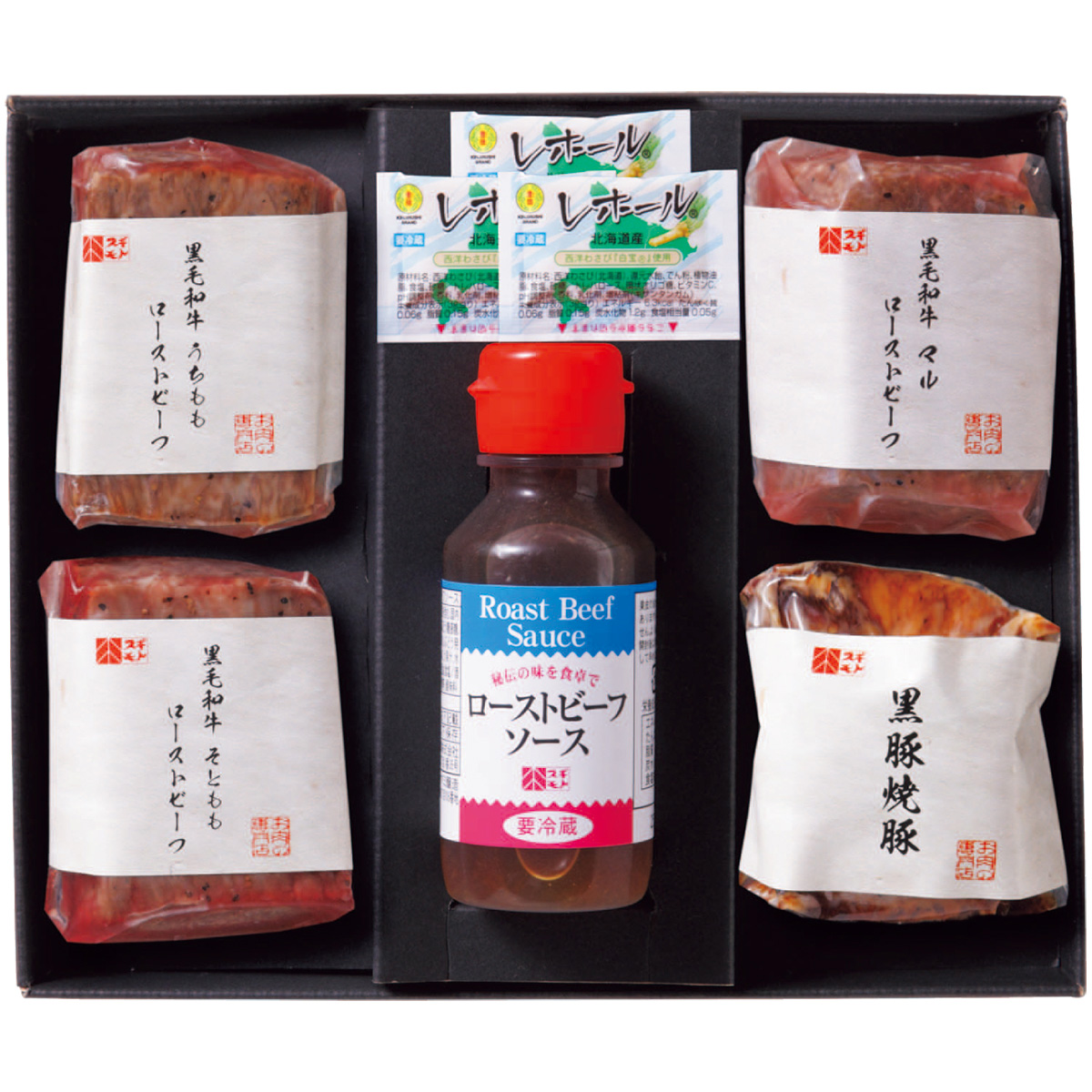 黒毛和牛(うちもも・マル・そともも)各100g、黒豚焼豚100g、ローストビーフソース100ml、レホール3g×3 サイズ縦185×横215×高さ55
