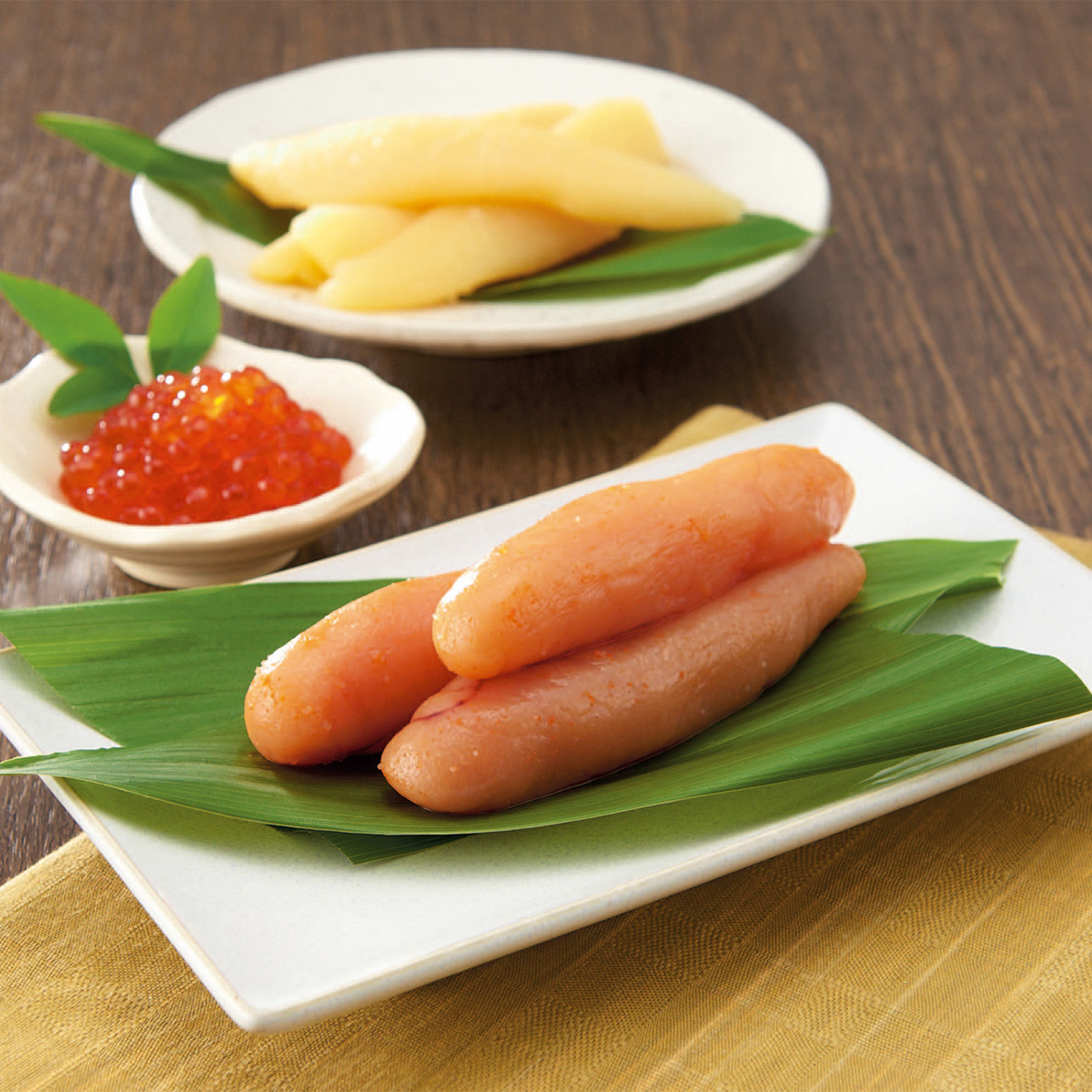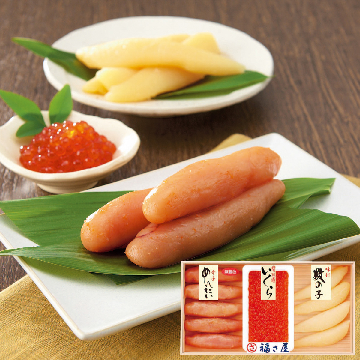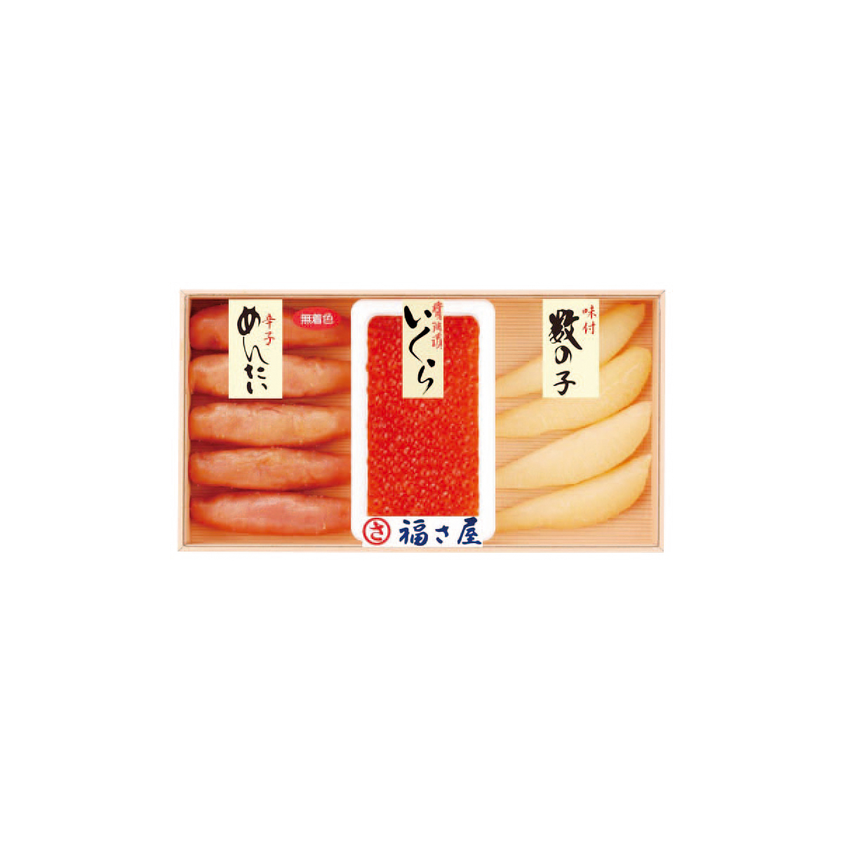 無着色辛子めんたいこ160g(ロシア又はアメリカ産)、味付数の子80g(アメリカ又はカナダ産)、醤油いくら60g(北海道産)(全て福岡県にて加工) サイズ縦169×横309×高さ40