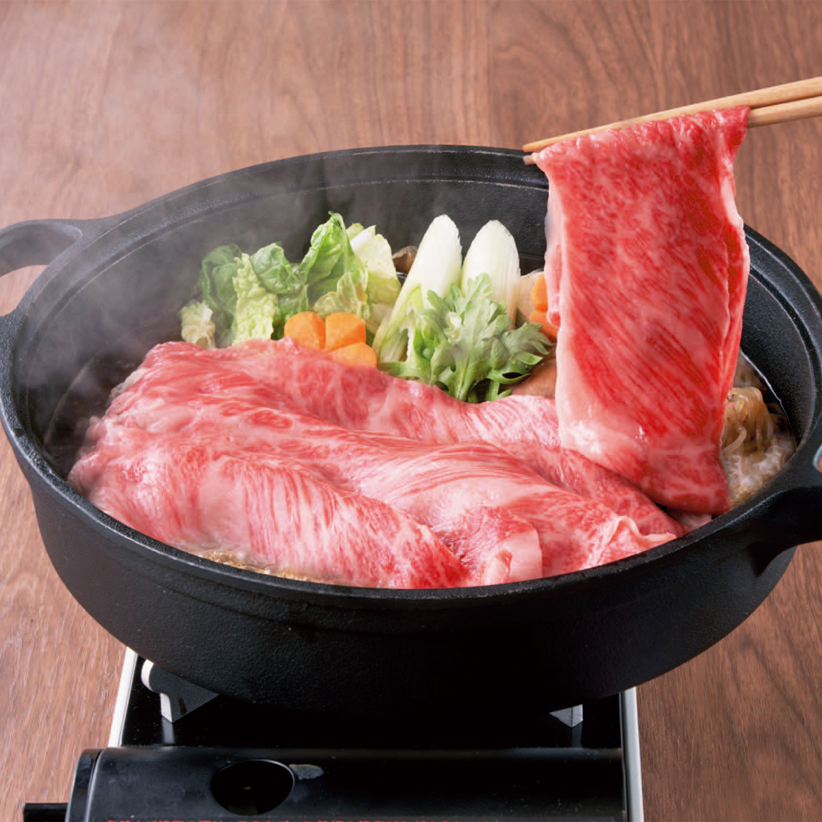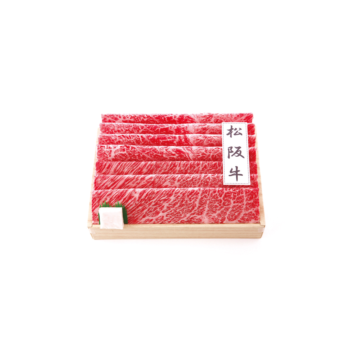 日本三大和牛のひとつ松阪牛を使用。肩ロース肉と肩肉の2種類をすき焼き用でスライスしました。