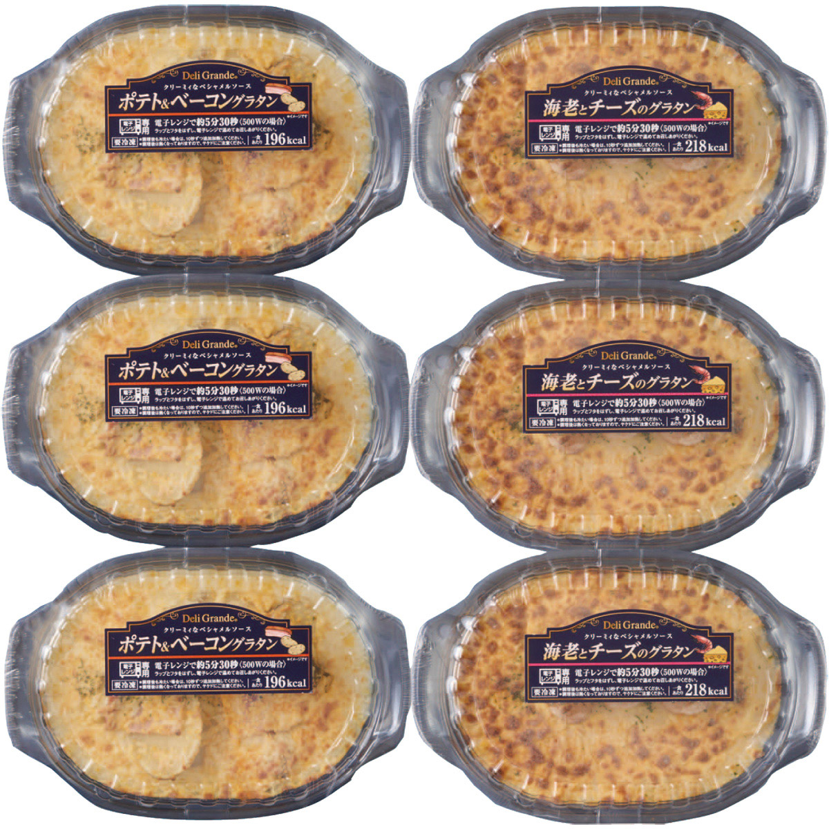 ポテト&ベーコン・海老とチーズ各200g×各3 サイズ縦220×横265×高さ111