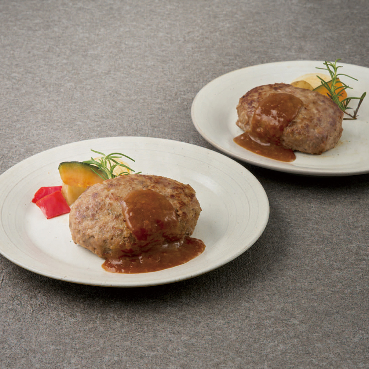 黒毛和牛の旨味と、ごぼうの香りと食感が楽しめる2種類のハンバーグステーキセットです。