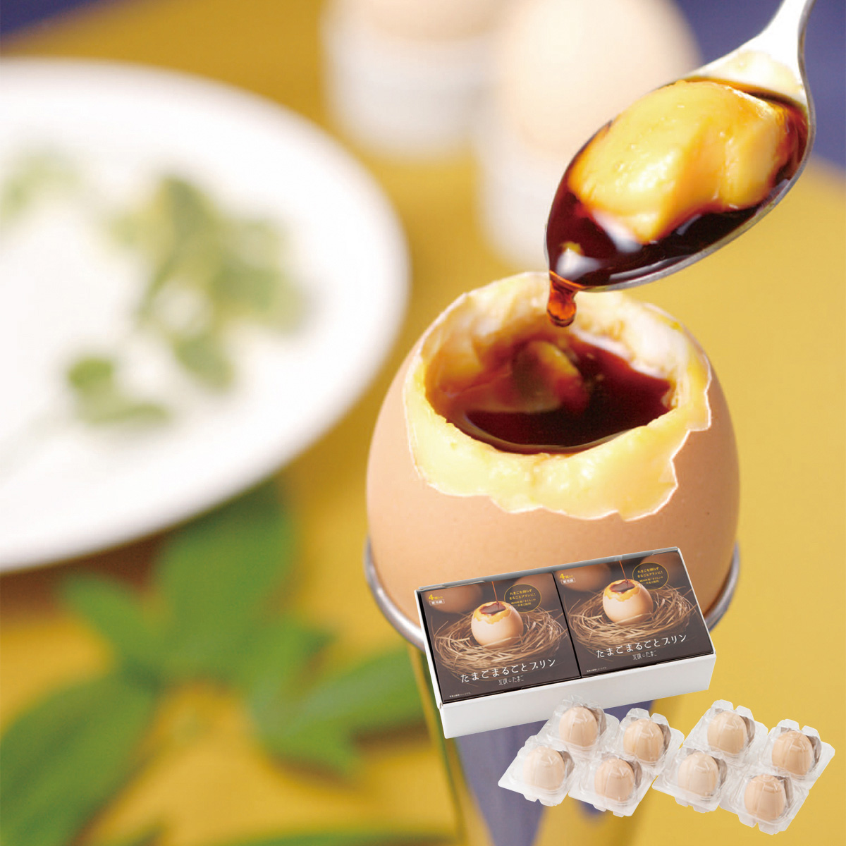 純国産鶏さくらの新鮮な卵を、割らずに中身だけプリン状にしました。