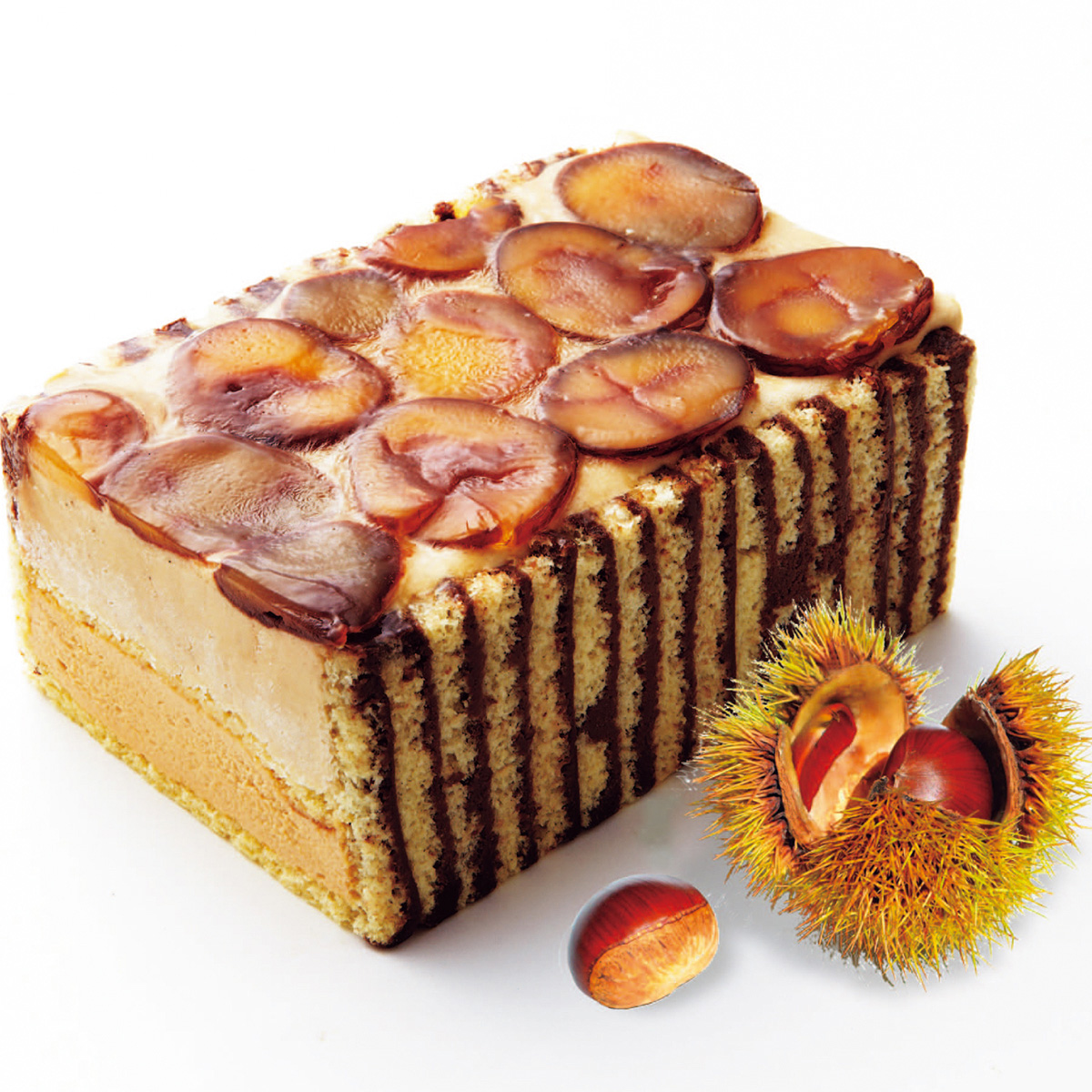刻み栗を散りばめたコクのある和栗のムースに濃厚なキャラメルのムース、表面には渋皮付きの和栗を贅沢に敷き詰めました。