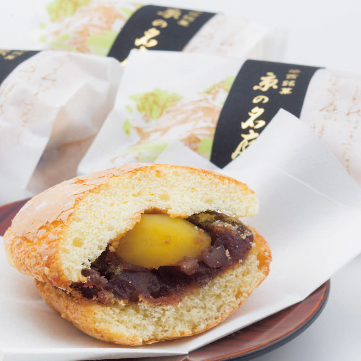 上品な甘さの大粒の小豆と大きな栗を丸ごと一粒入れたしっとり食感の和風ブッセです。和と洋のバランスが絶妙な逸品です。