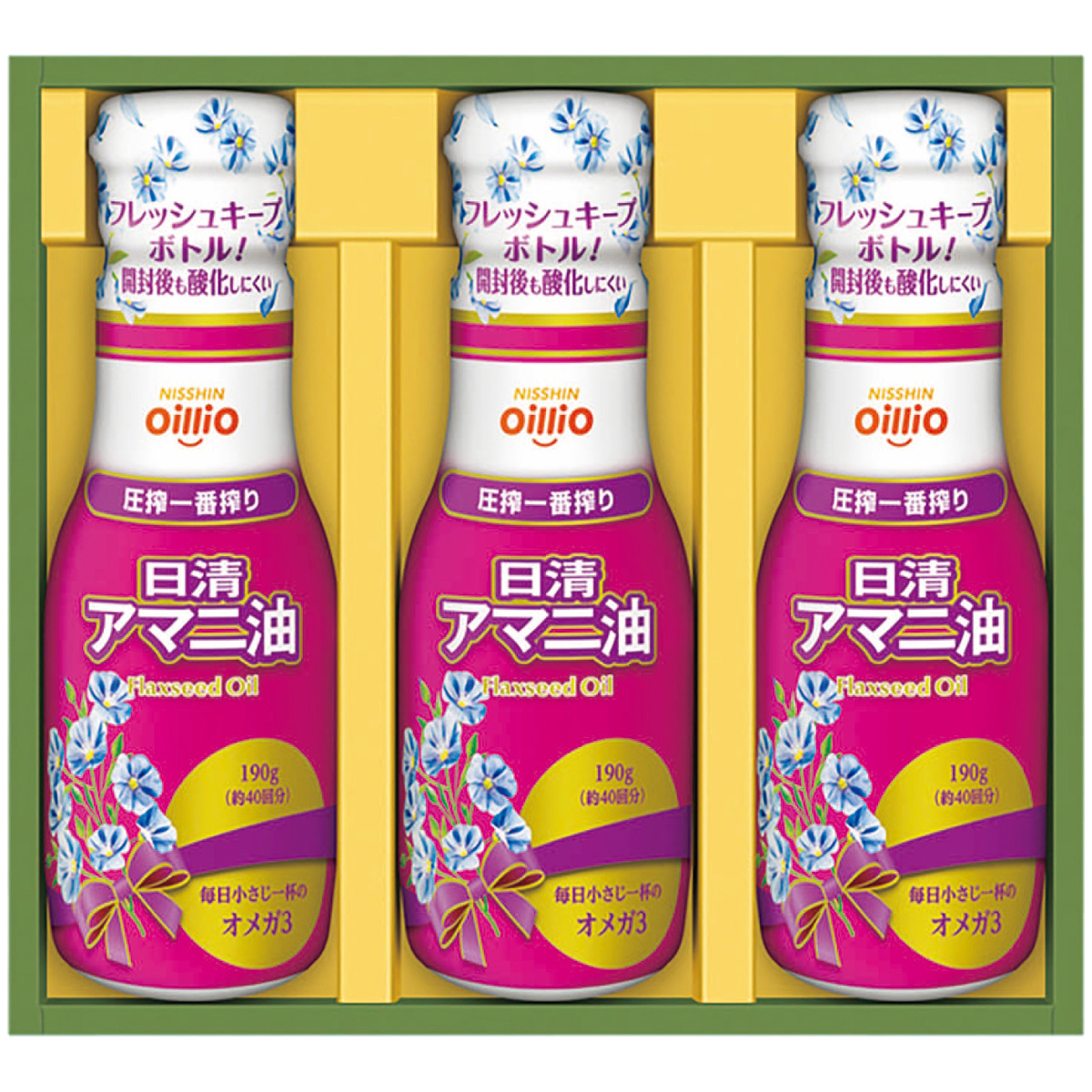 小さじ1杯で1日分のオメガ3を摂取できるアマニ油の詰合せです。
