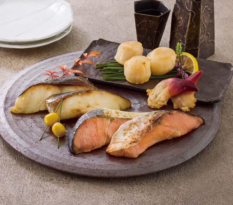 鮭・銀鱈 各2切入×各2、北寄貝(2個入)・帆立(4個入)×各2
