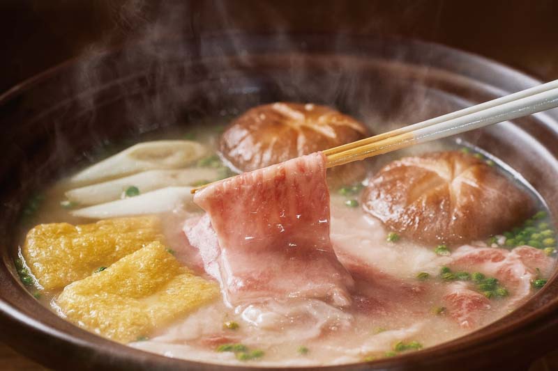 【店主 緒方氏特製の白味噌に山椒を効かせたお出汁で食すしゃぶしゃぶ鍋。】ミシュランガイド京都・大阪2010以来、2つ星を獲得し続ける名店。お肉は緒方氏が目利きをした厳選黒毛和牛、白味噌は京都を代表する有名店の味噌を使用しています。