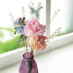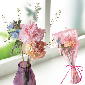 パステルカラーのカーネーションと小花を合せたブーケです。
