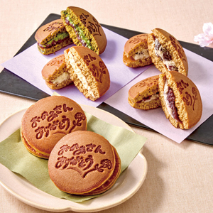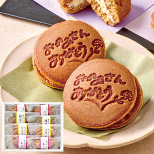 4種類の生どらに感謝の気持ちを込めたメッセージの焼印をつけてお届けいたします。